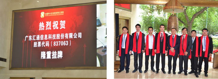 Huitong technology has been in the April 22, 2016 new three board, log on to the new three board, will further enhance the brand influence of huitong technology, for enterprise to bring more broad space for development, standardize management of the enterprise is rich enterprise financing channels, to promote better and faster development.