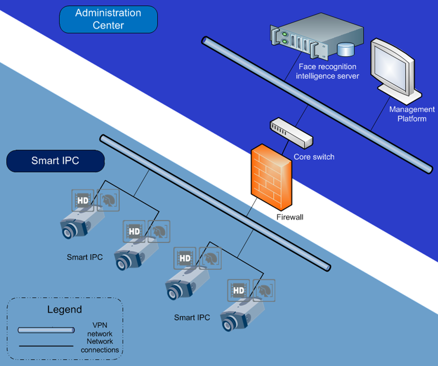 The intelligent server is composed of hardware platform and integrated management service platform. Intelligent server is mainly used to have independent intellectual property rights of the face modeling algorithm, the face matching algorithm, the software architect of the two development of the integrated management service platform. Powerful hardware platform to support intelligent agile service platform, and the core algorithm of high efficiency and the ability to play the hardware platform.